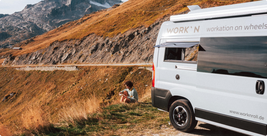 Für Work’n Roll wurde ein Branding-Konzept entwickelt, das den Geist von Freiheit, Mobilität und moderner Arbeitskultur widerspiegelt. Inspiriert von der Idee, Arbeit und Urlaub nahtlos miteinander zu verbinden, fängt die visuelle Identität die innovative Essenz ein.